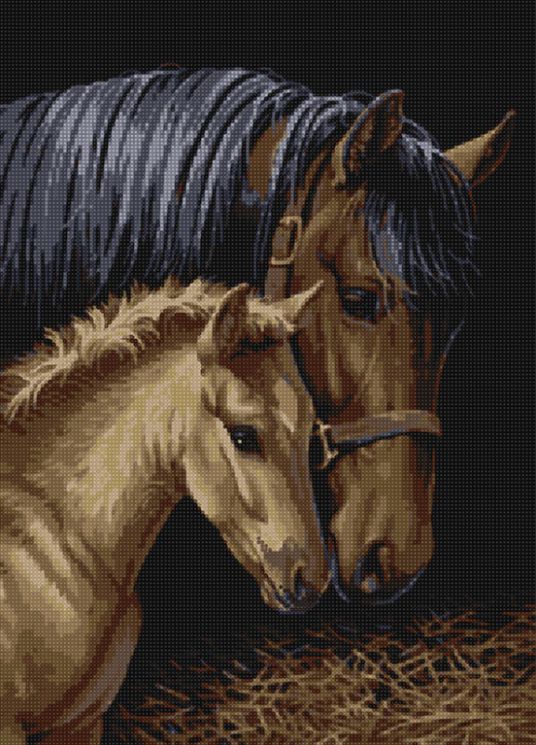 Обратите внимание, что аМА2-010 Алмазная мозаика ТМ Наследие "Жеребец с жеребёнком" подразумевает полную выкладку акрилловыми стразами. Это значит, что клеить стразы нужно будет на всю основу - заготовленных заранее элементов картины нет.